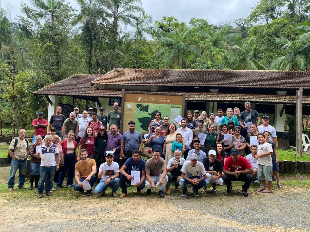 Provedores de serviços ambientais da segunda edição do PSA Juçara celebrando a assinatura do contrato, na região do Vale do Ribeira.