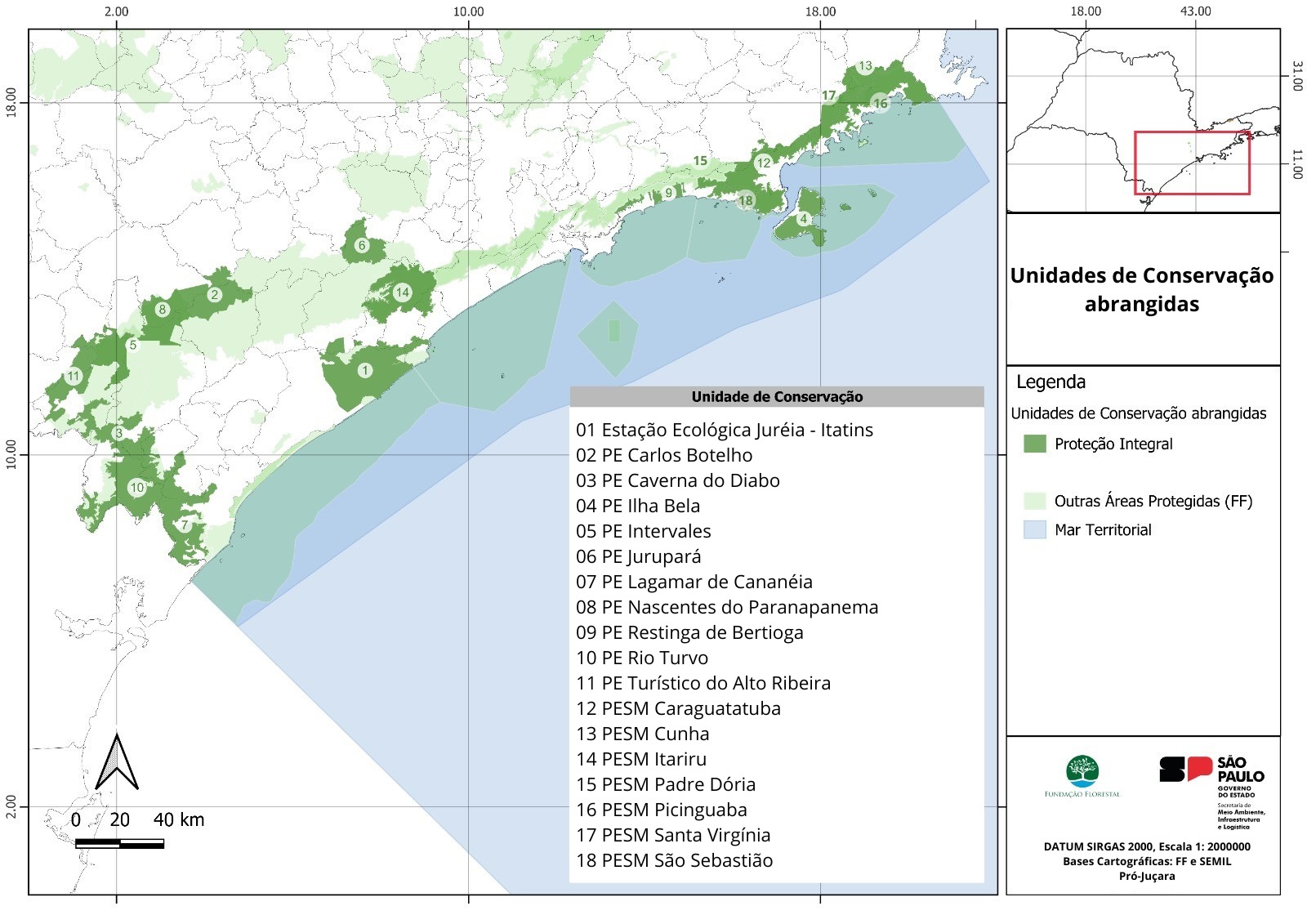 A Fundação Florestal, no cumprimento de sua missão de proteger a fauna e flora nativas do estado, criou o Programa de Conservação da Palmeira Juçara (Pró Juçara) em 2021. Com essa iniciativa, espera-se aumentar a quantidade de palmeiras dentro das UC de Proteção Integral, bem como nos imóveis particulares localizados em UC de Uso Sustentável.